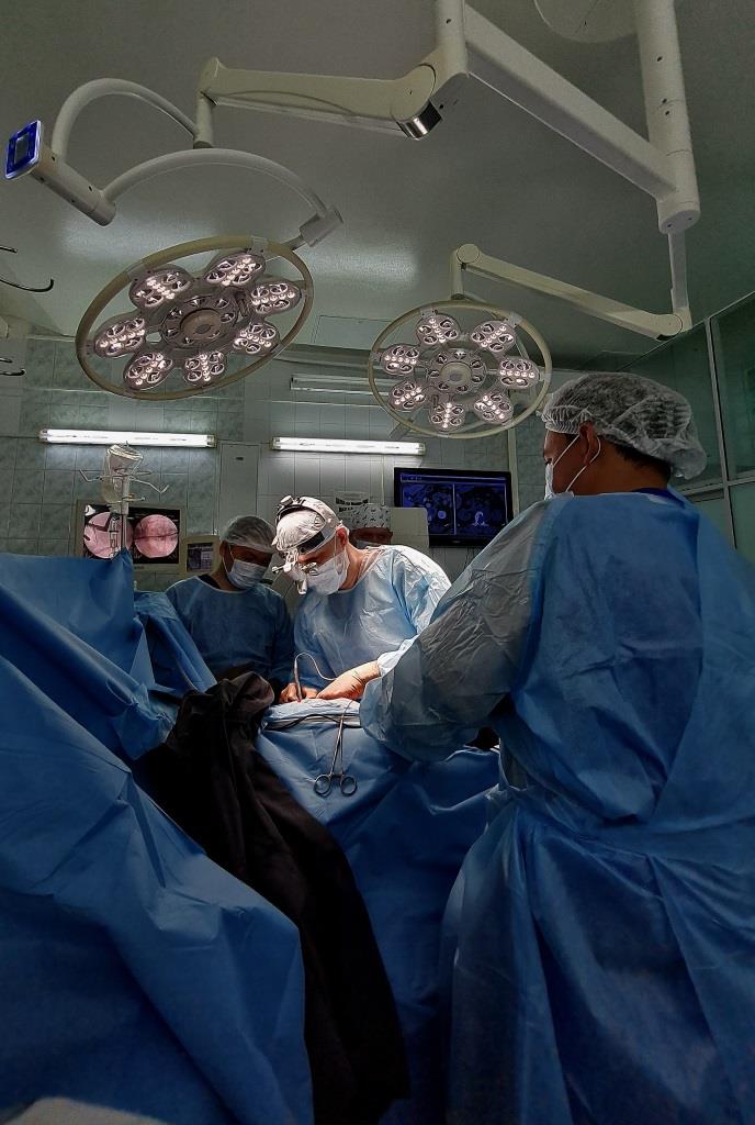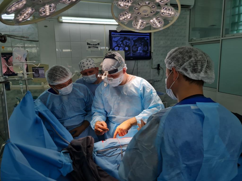 Команда специалистов — нейрохирург, травматолог-ортопед, анестезиолог-реаниматолог Новосибирского НИИТО им. Я.Л. Цивьяна и абдоминальный хирург Новосибирской областной клинической больницы — провела 10-часовую операцию по удалению повторной невриномы из позвоночника 66-летней пациентки. Сложность хирургии заключалась не только в тотальном удалении новообразования и фиксации повреждённого позвоночника, но и в доступе к опухоли — она распространялась в тело позвонка и задевала почечную артерию.